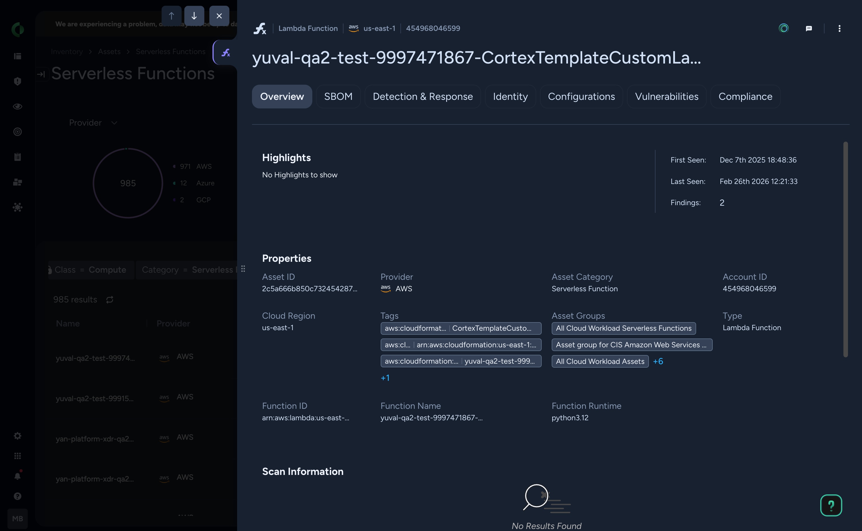 Identify and secure functions running in your cloud environments through continuous scanning.