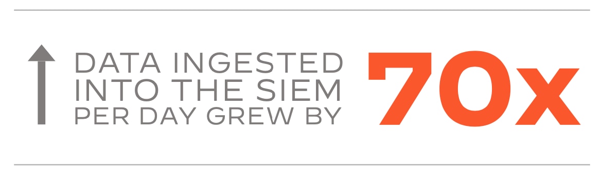 A legacy security information and event management (SIEM) was ingesting a minimal amount of data, due to cost and difficulty of integration, and producing a huge volume of false positives. This hampered the ability of the in-house security team to gain real visibility or be prepared for security threats.